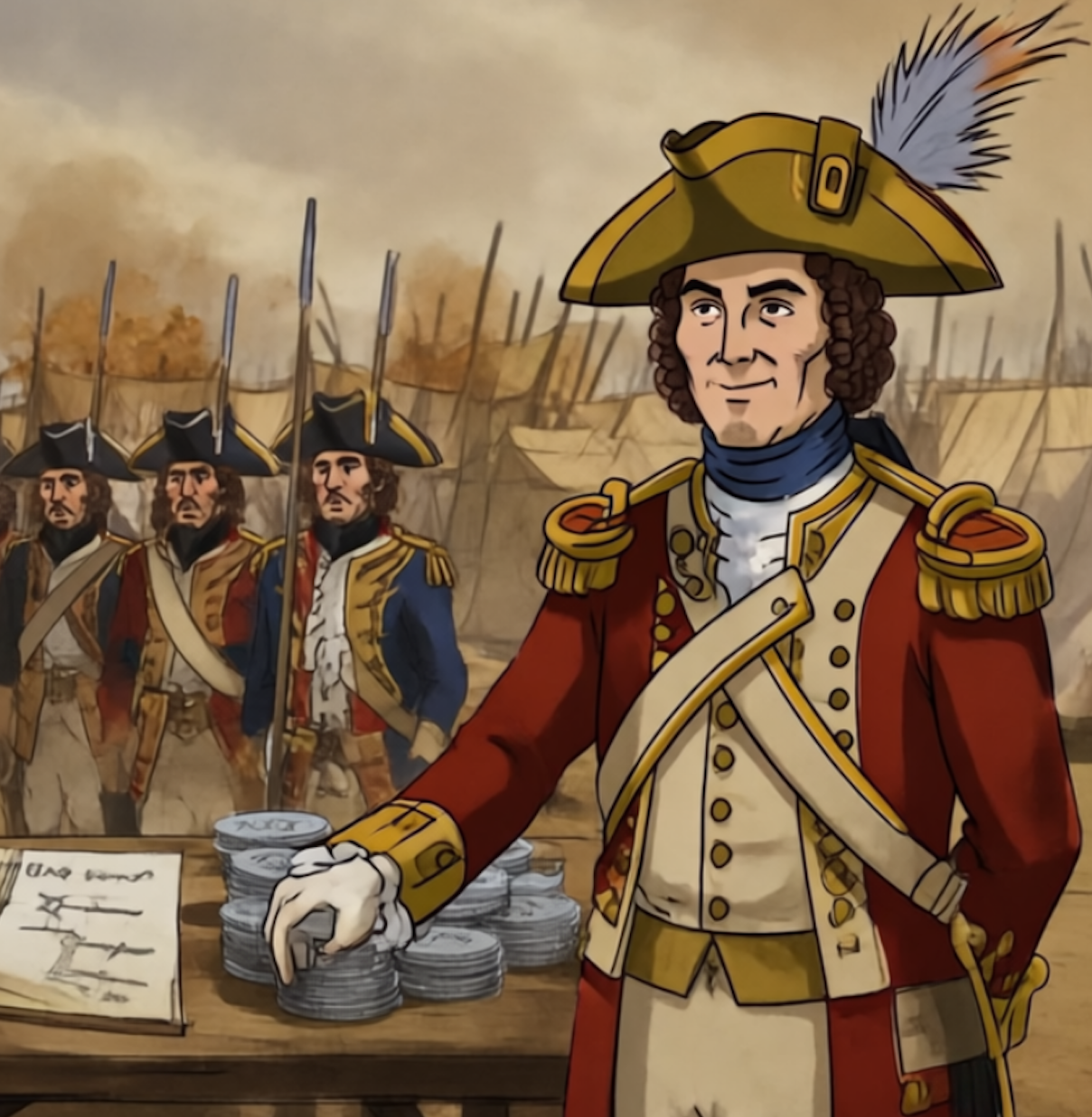 You must strategically manage the flow of 500,000 silver pesos from Havana to fund the crucial Franco-American siege of Yorktown in 1781, ensuring troops are paid and supplied to secure victory. Your success depends on balancing financial distributions and troop deployments to maintain morale and trust among allied commanders while the siege intensifies around you.